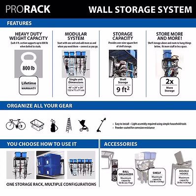 - 800 lb. (363 kg) weight capacity installed to studs (per section)