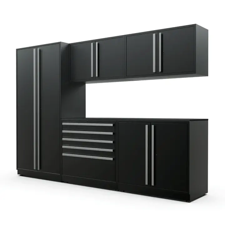These pre-fabricated cabinet sets are engineered for serious garage storage — whether you’re building a workshop, automotive showcase, or organized family storage space.